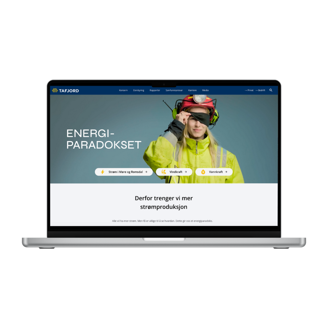TAFJORD er en merkevare, samfunnsutvikler og arbeidsplass som skaper liv i bygd og by. Med vannkraft, energigjenvinning, telekommunikasjon og kraftnett utvikler og sikrer de avgjørende infrastruktur for næringsliv og lokalsamfunn.